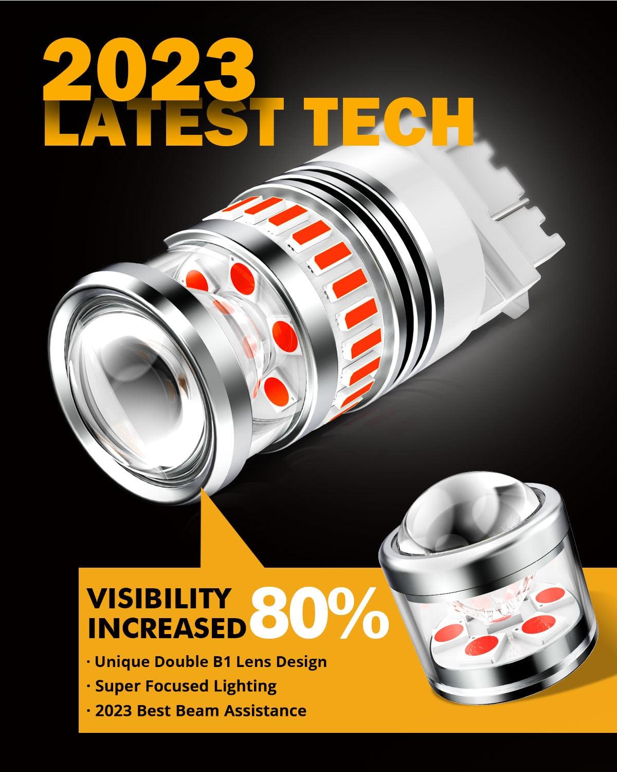 T25 3157 3156 LED Brake/Tail Light Bulbs 11W 4000LM Red B1 Series | 2 Bulbs