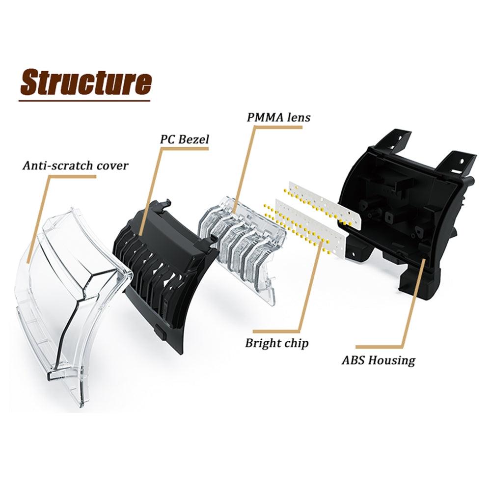 Integrated Design: Equipped with fender lights and side marker lights. Lighting Modes: 1. Daytime Running Lights; 2. Turn Signal Lights. The new design makes your Jeep more attractive.